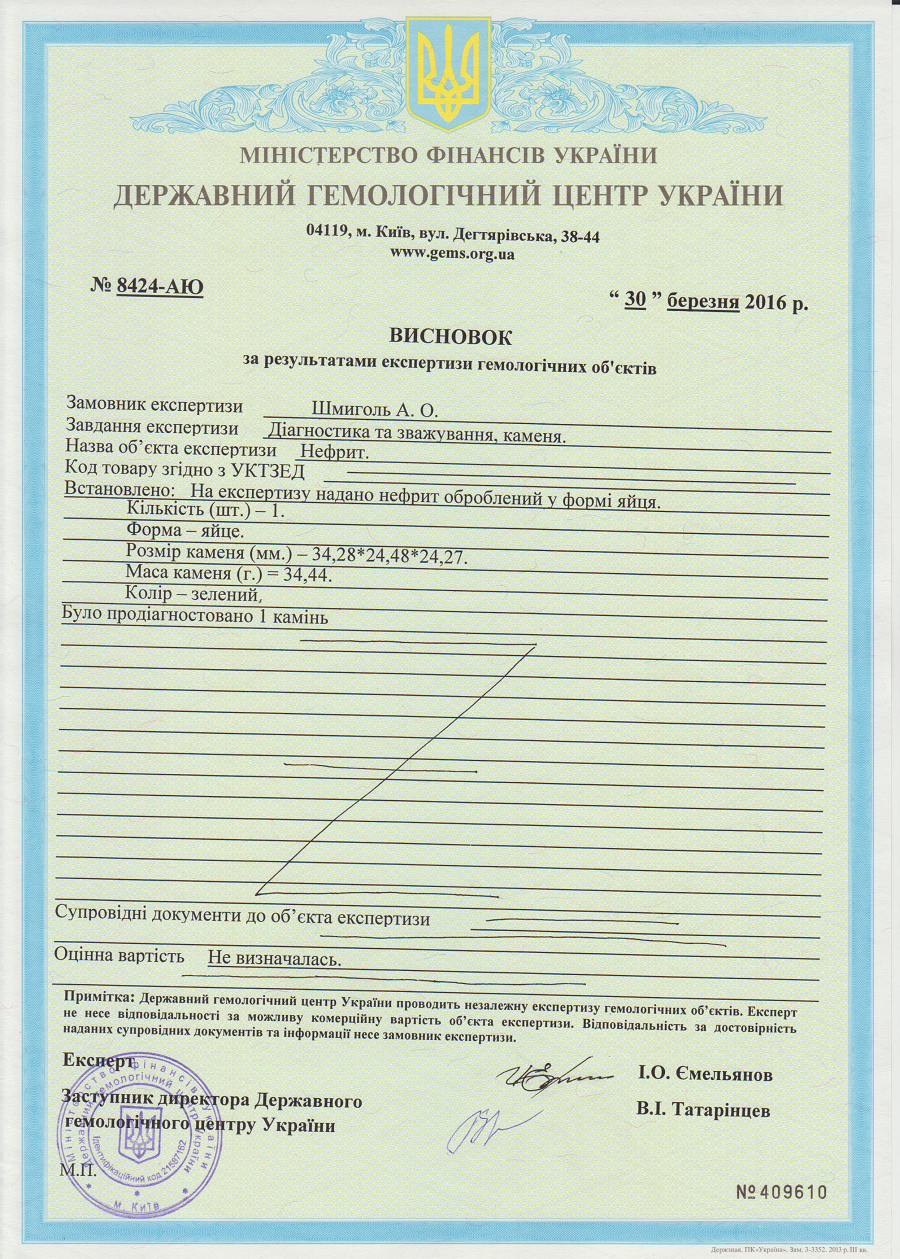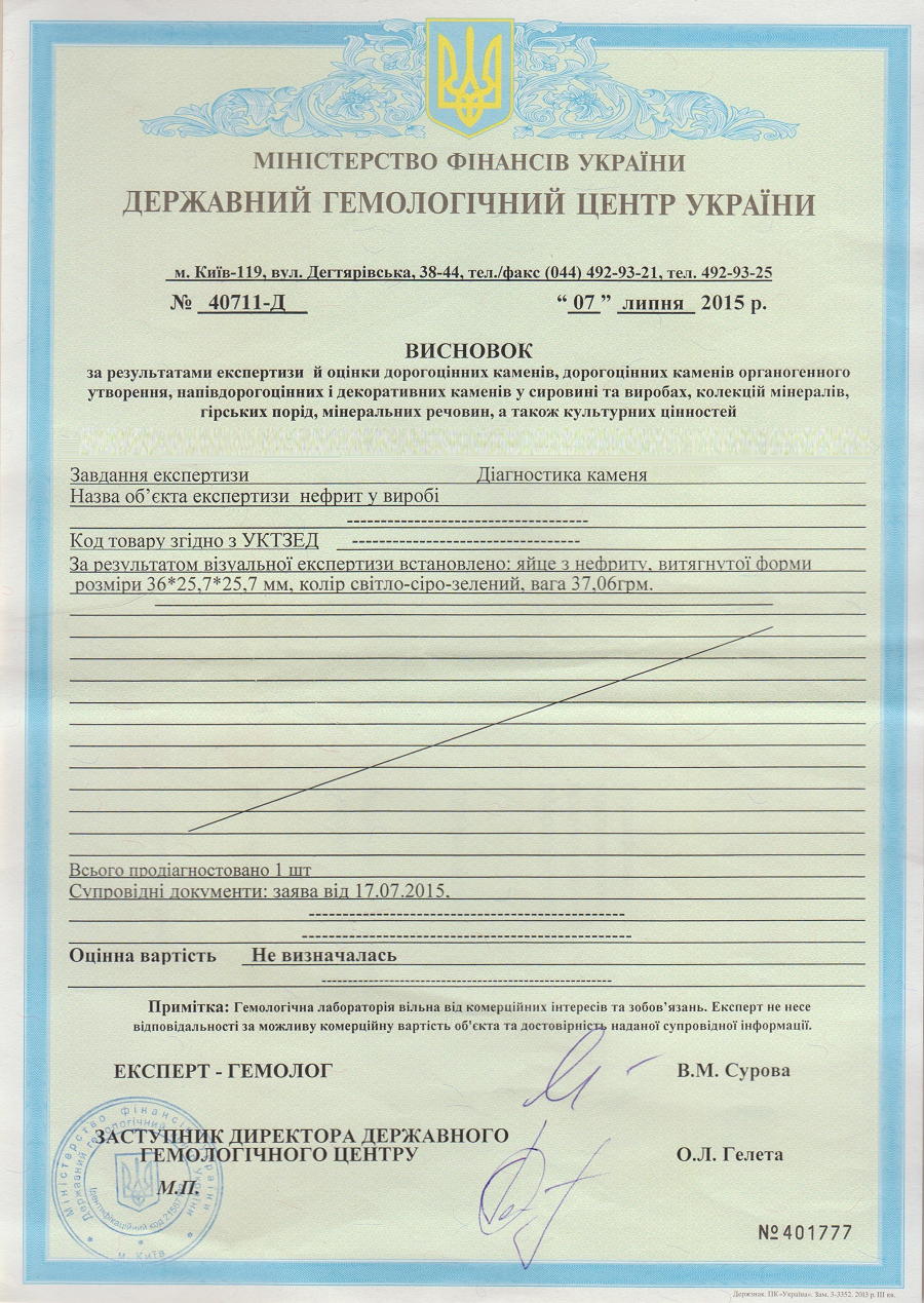 Как проверить подлинность нефрита? Как уберечь себя от многочисленных подделок? Лучший способ — заключение геммологической экспертизы. Подлинность наших нефритовых яиц подтверждена несколькими независимыми экспертами-геммологами — государственными и частными. Вы можете ознакомиться с заключениями внизу этой страницы.