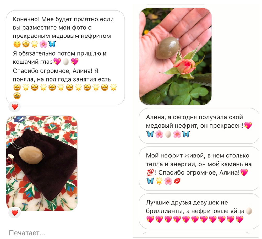 Некоторые мои клиентки, которые заказывали у меня нефритовые яйца, говорят, что я идеальна. Это потому, что с многими из них отношения переросли в дружбу. Изначально нас объединили женские практики с нефритовыми яйцами.