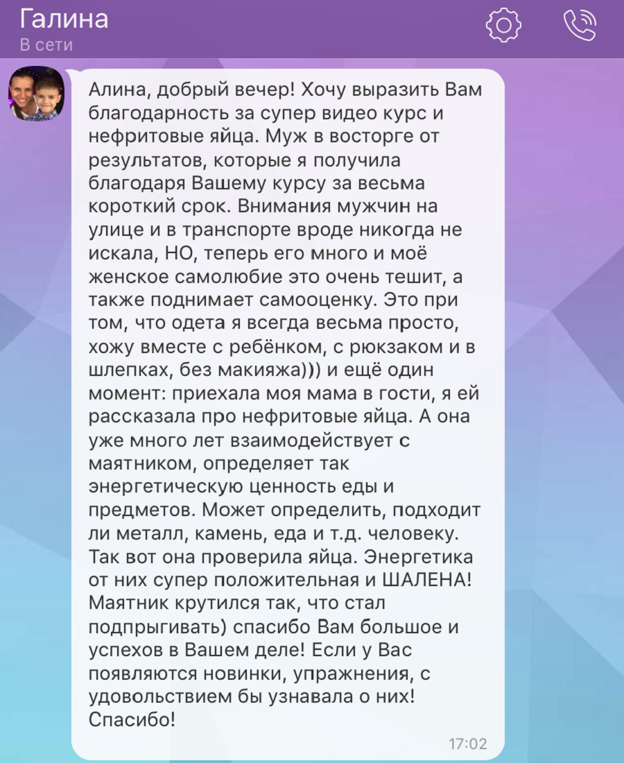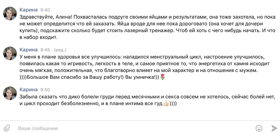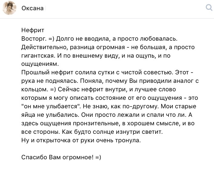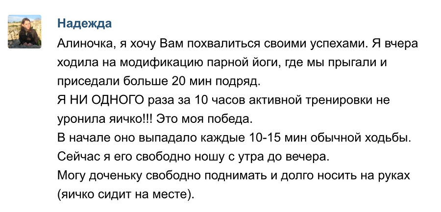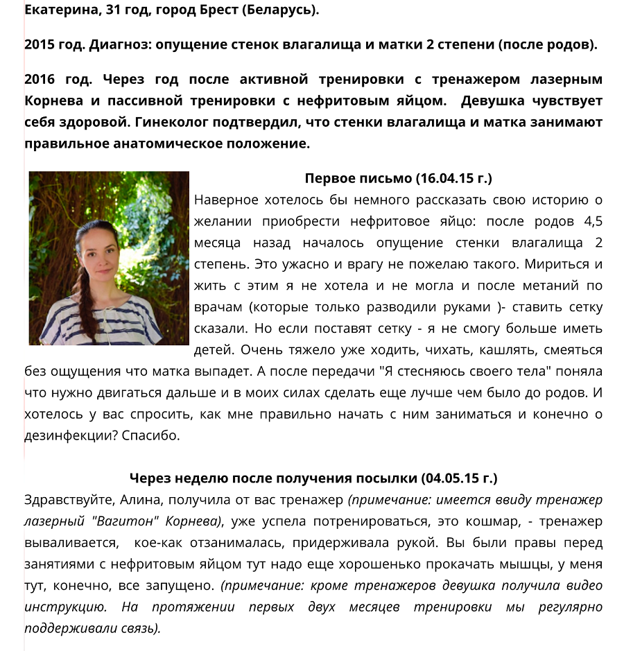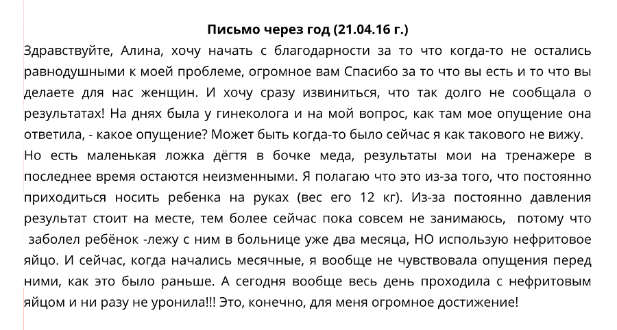 При тренировке с нефритовыми яйцами — профессиональный подход на первом месте. Вот некоторые отзывы моих клиенток. Разумеется, опубликованы с их разрешения.