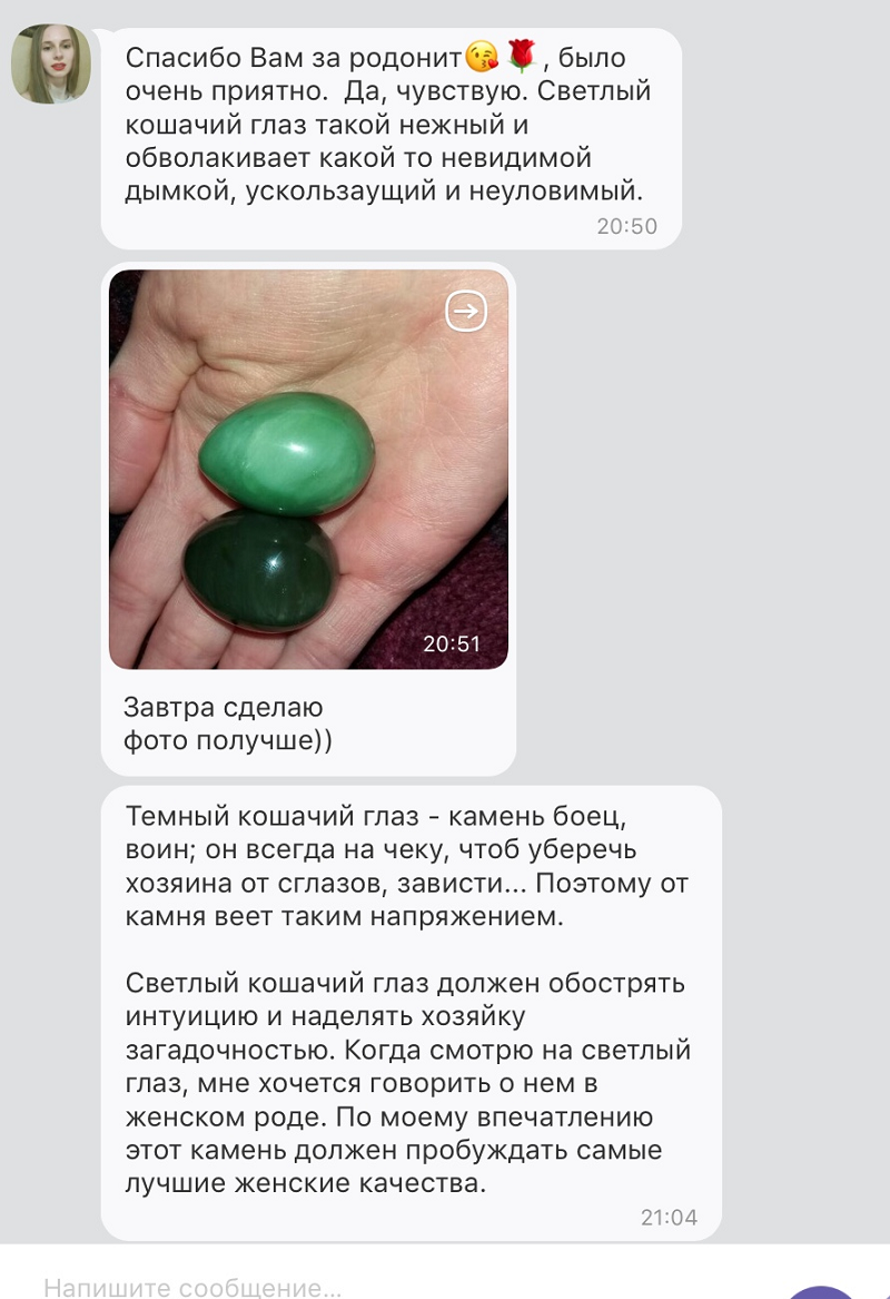 Так вот: я получила в подарок самый красивый нефрит «Кошачий глаз».