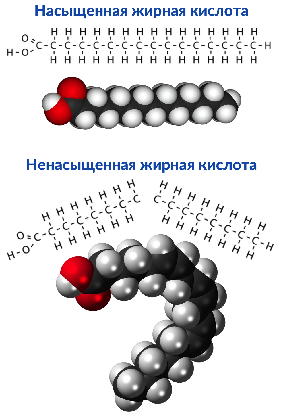 Ненасыщенная жирная кислота имеет двойную связь между атомами углерода. В местах появления двойных связей кислота начинает изгибаться. Поэтому имеет красивую форму извилистой.